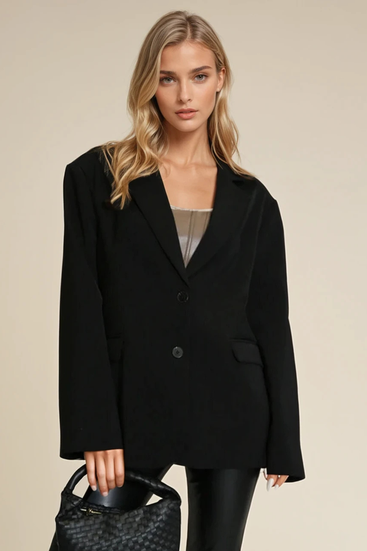 Black Boxy Blazer with Button Fastening