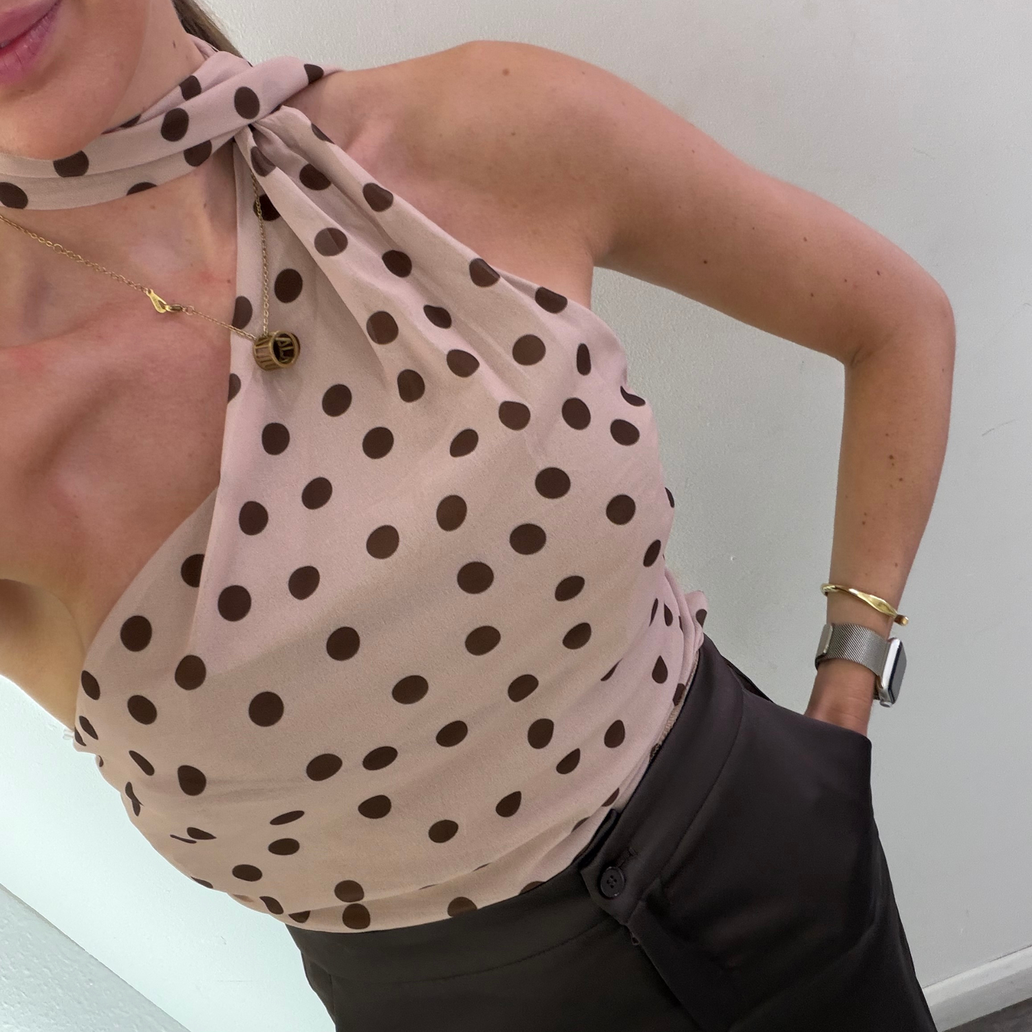 Polka Dot One-Shoulder Scarf Top