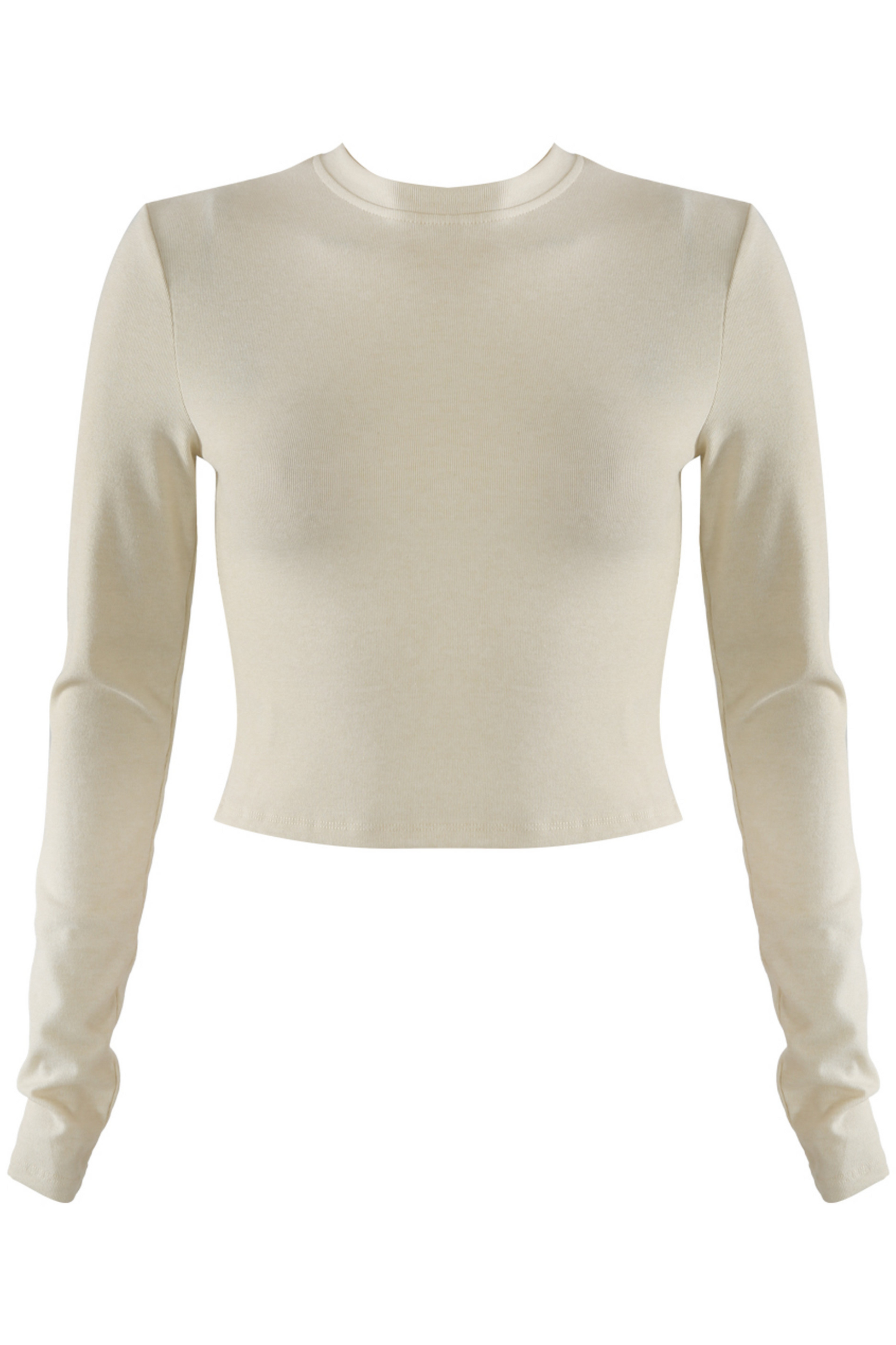 Beige Crew Neck Long Sleeve Cropped Top – Unscripted Fashion