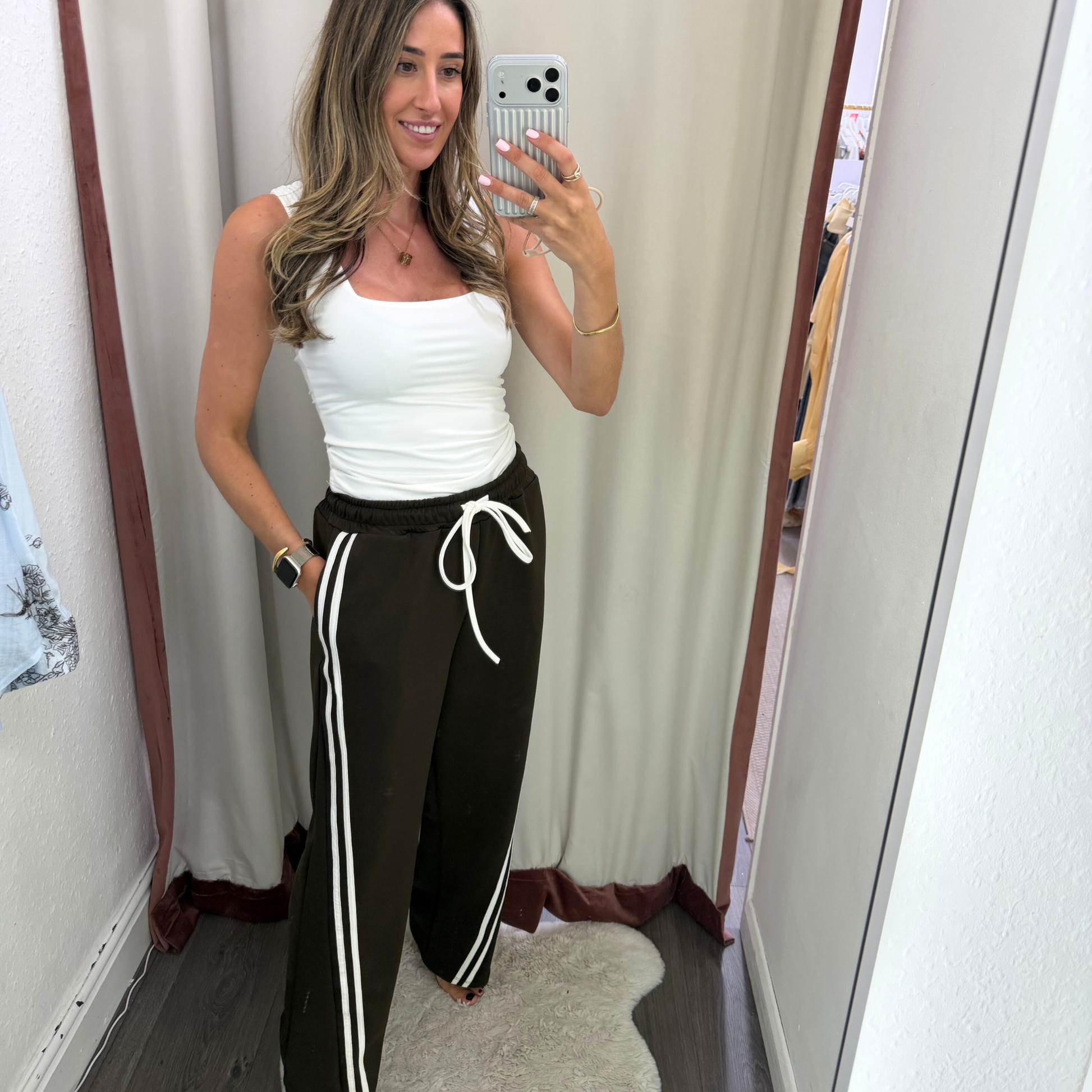 Chocolate Brown Side Stripe Wide Leg Trousers