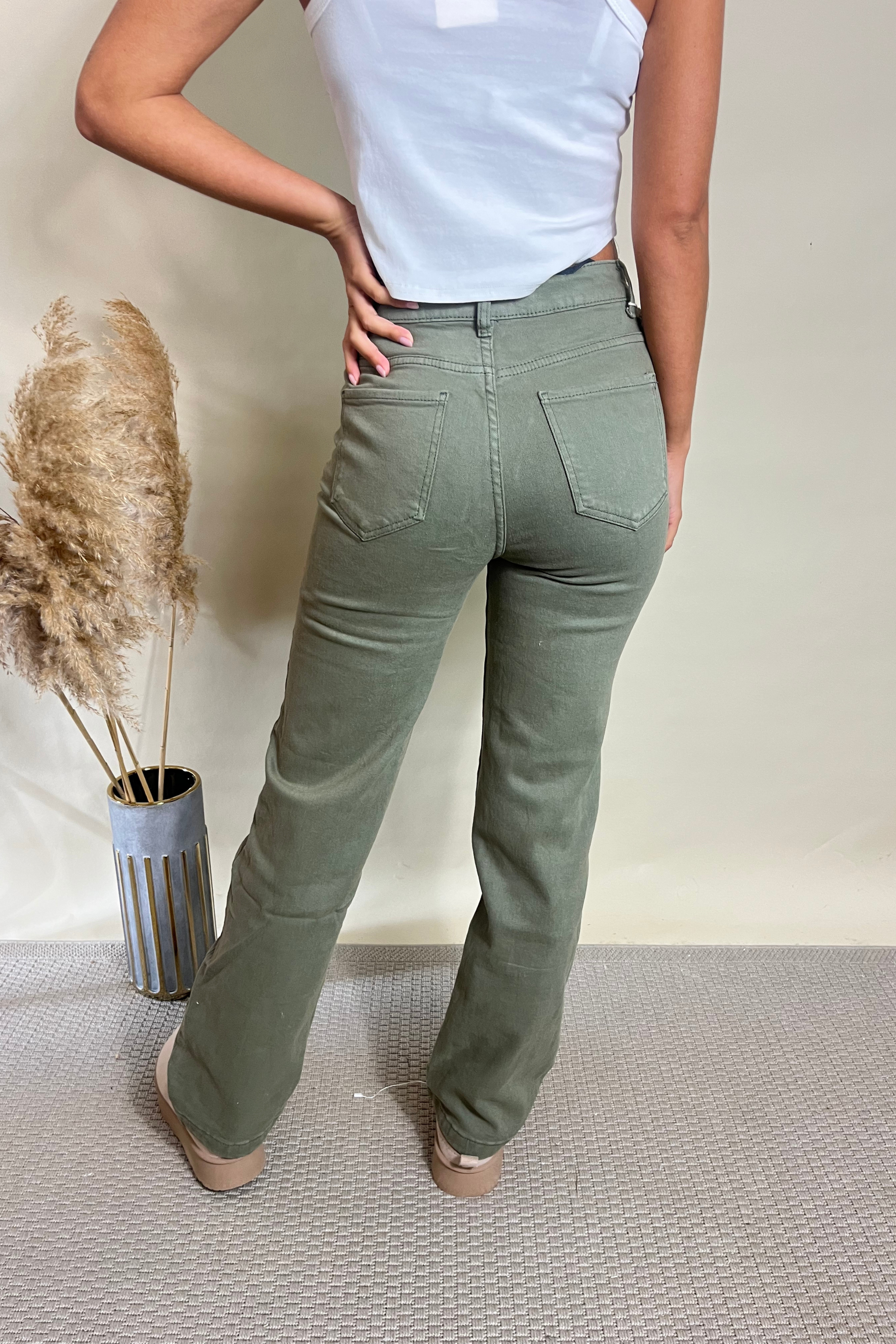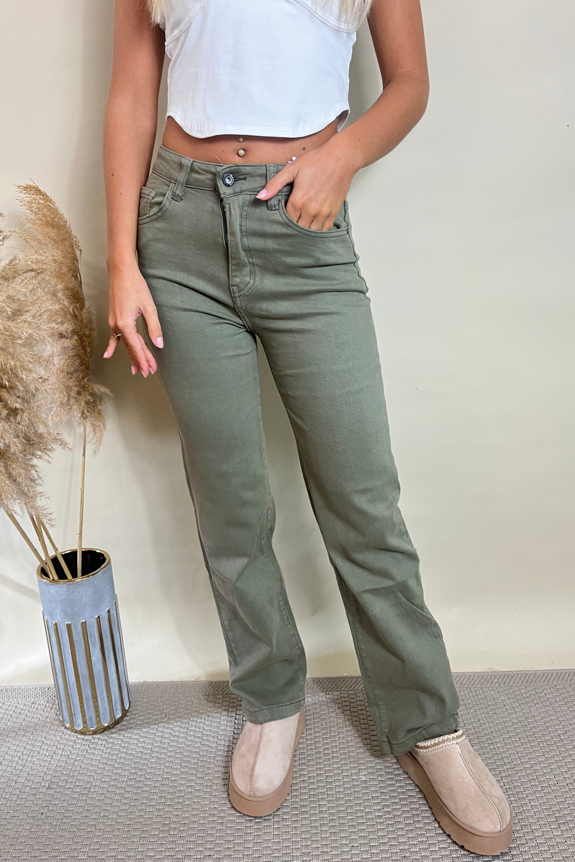 Khaki block colour for an autumnal look this season. These jeans have all the components you want, belt loop holes, pockets and zip and button fastening. The jeans have a slight stretch in the fabric creating the most comfortable wear. A full length style straight leg denim jean.